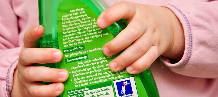 - möglichst Reinigungsmittel mit dem Zusatz Bitrex verwenden (oder selbst zugeben). Bitrex schmeckt schon in kleinsten Mengen extrem bitter, sodass es von Kindern gleich wieder ausgespuckt wird