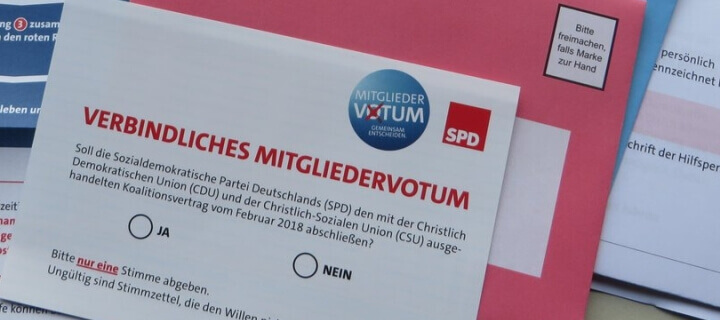 Nach dem Votum über einen Eintritt der SPD in die Große Koalition (GroKo) haben 6.000 Mitglieder die Partei wieder verlassen. Dies teilte ein Sprecher am heutigen Donnerstag mit. Hatte die SPD zum Stichtag 6. Februar 2018 noch exakt 463.723 Mitglieder, waren es am 31. März nur noch 457.700, was einem Rückgang von genau 6.023 Mitgliedern entspricht.