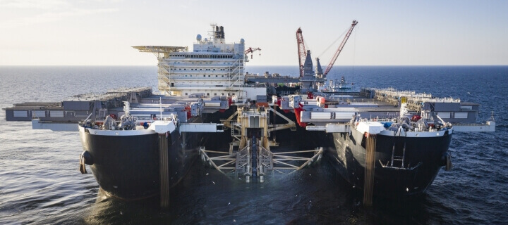 | Die Ostsee-Gas-Pipeline Nord Stream beginnt im russischen Wyborg und landet nach 1.224 Kilometer in Lubmin bei Greifswald an. Sie besteht aus vier Strängen, wovon zwei (Nord Stream 1) bereits 2011 fertiggestellt wurden. Die nominelle Transportkapazität aller Stränge zusammen beträgt 110 Mrd. Nm³ Gas pro Jahr. |