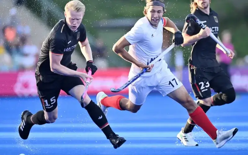 Die deutschen Hockey-Herren vergaben zunächst mehrere Strafecken sowie weitere hochkarätige Chancen und taten sich auch sonst schwer gegen die mutigen Franzosen, die ihrerseits im Angriff ihre Chance auf den Halbfinaleinzug suchen mussten. Der ersehnte Führungstreffer fiel noch vor der Pause, als Kapitän Mats Grambusch aus spitzem Winkel abzog. Frankreich zeigte sich jedoch unbeeindruckt und glich in der 26. Minute nach einer Strafecke durch Charles Masson aus.